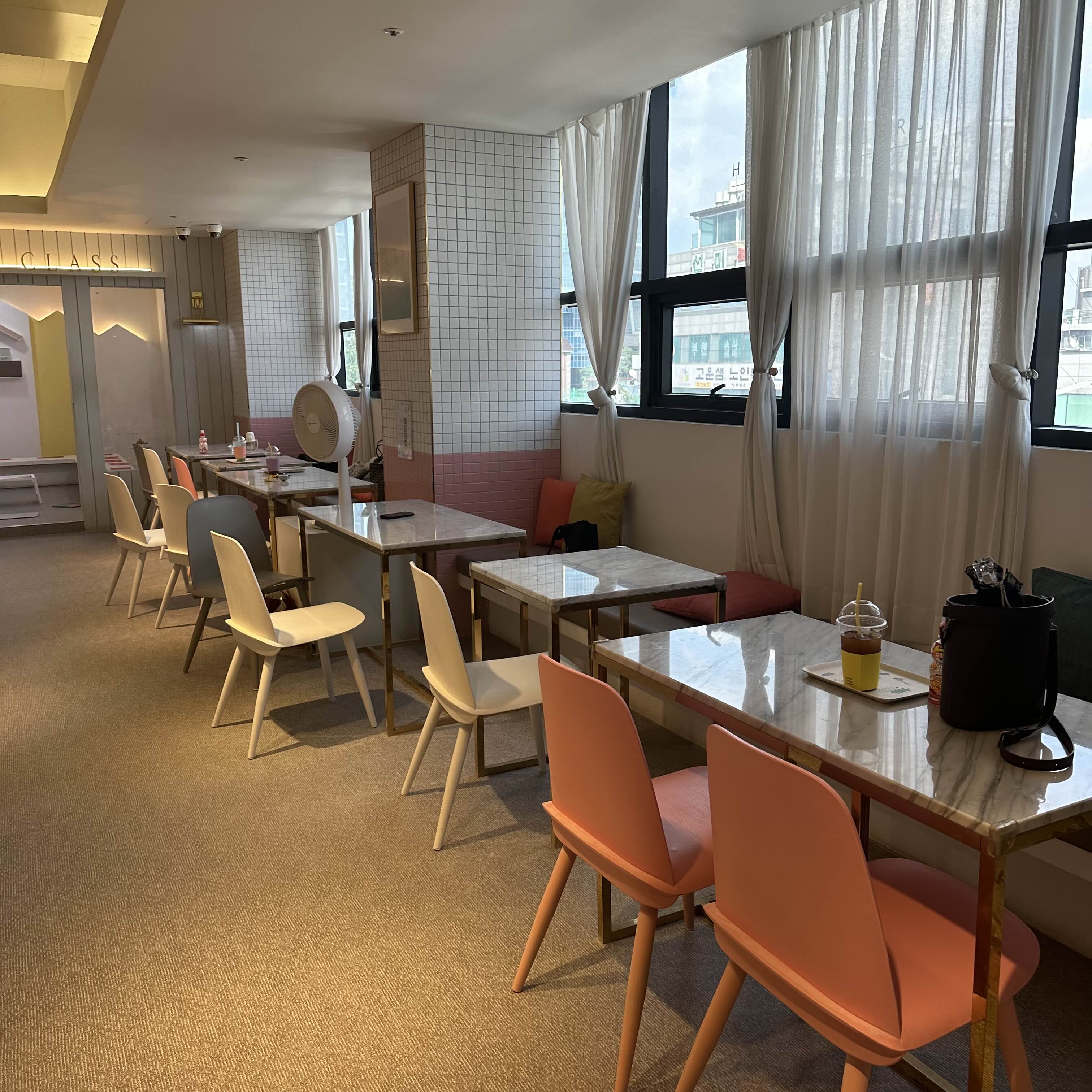 그리고 테이블과 의자가 많이 비치되어 있어요.