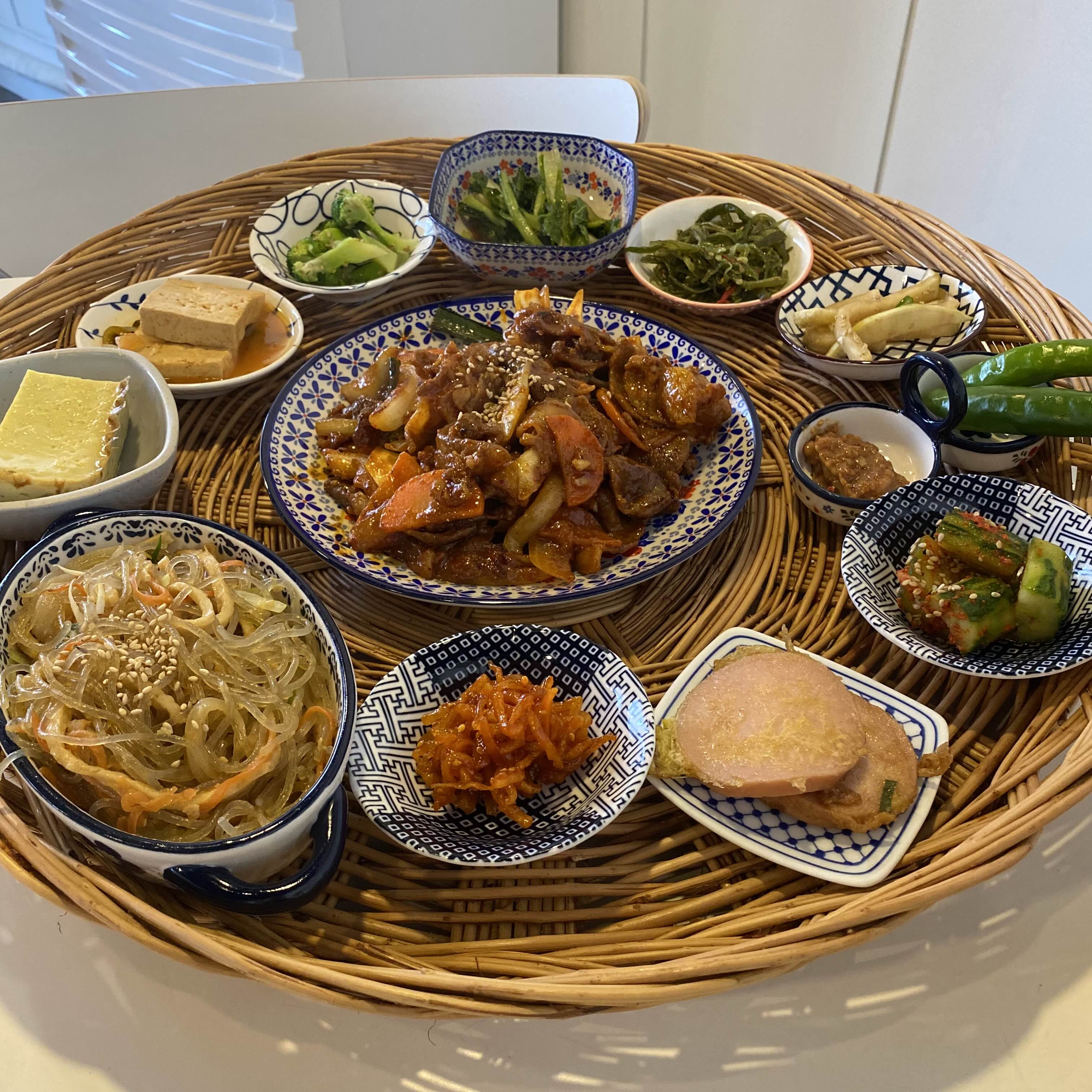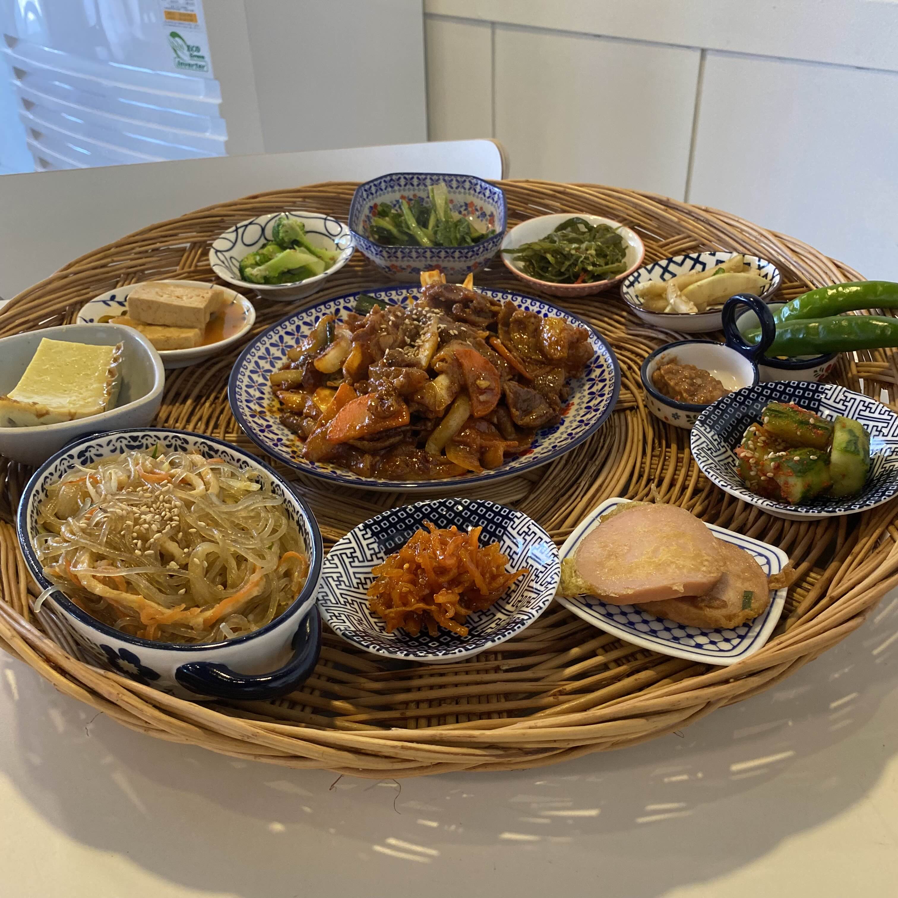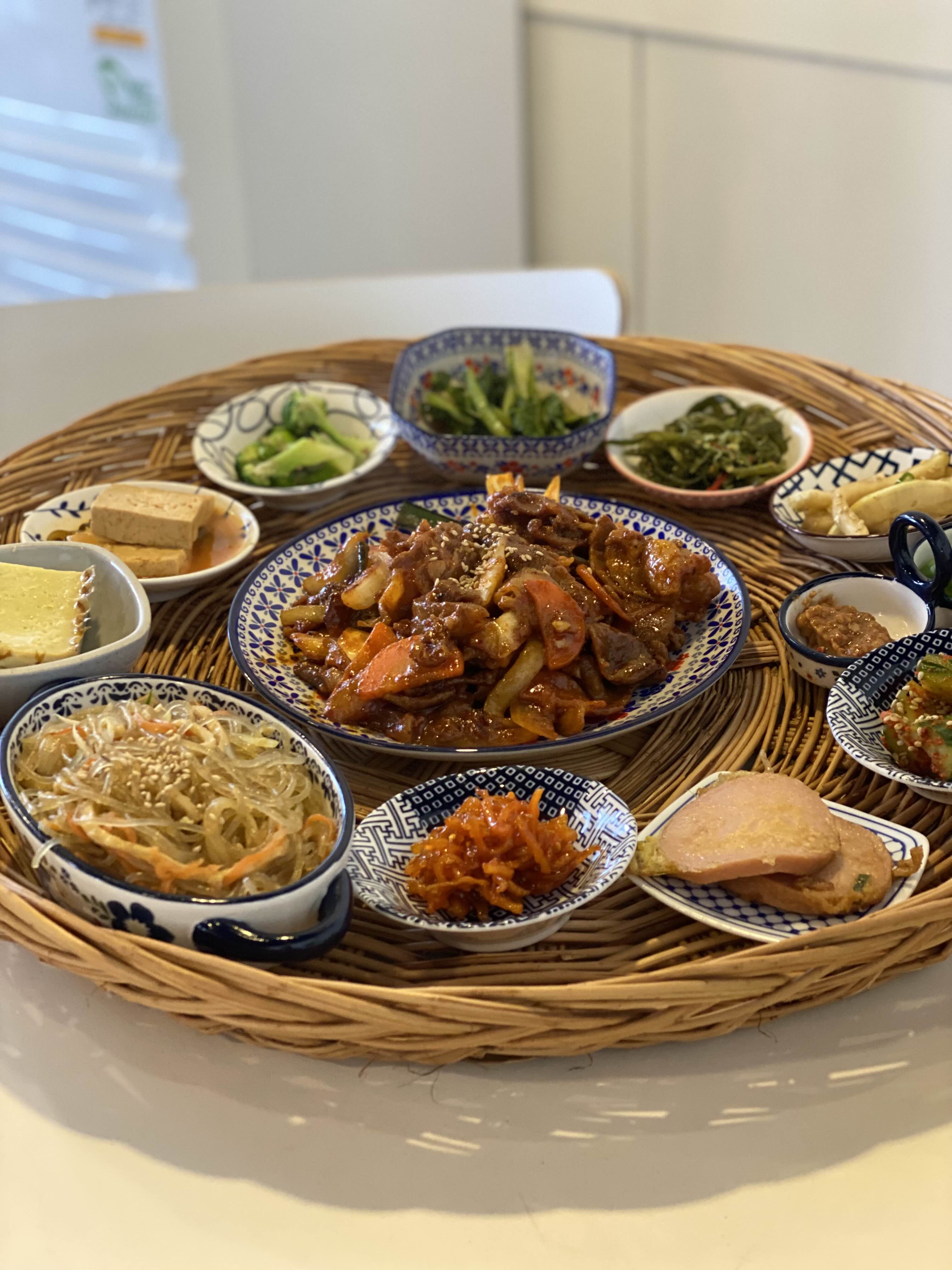 제주도를 담은 소쿠리 한상 제주산 흙돼지 두루치기를 메인요리와 10첩반상이 나왔네요!